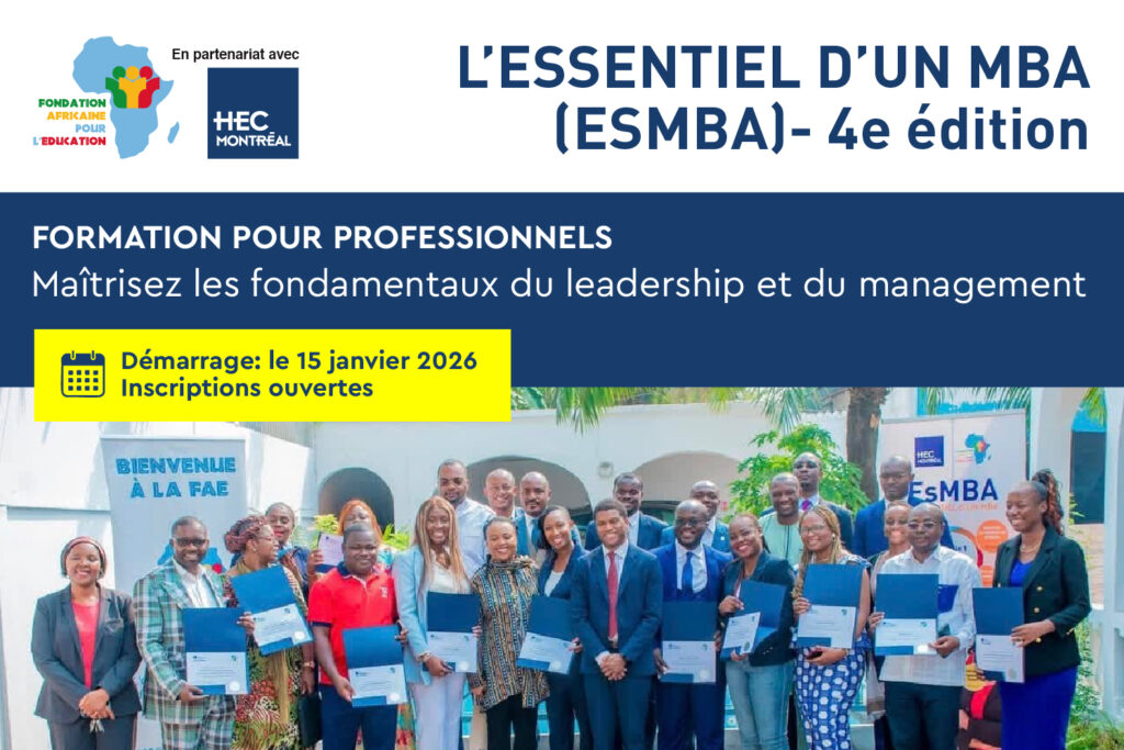 En 2020, HEC Montréal et la FAE ont mis en oeuvre, à Brazzaville, l’année préparatoire au Baccalauréat en Administration des Affaires (BAA) de HEC Montréal, dans le cadre du parcours international de cette prestigieuse école. Ce programme visait à offrir aux jeunes étudiants un tremplin vers une formation de haut niveau en gestion, dans un […]
