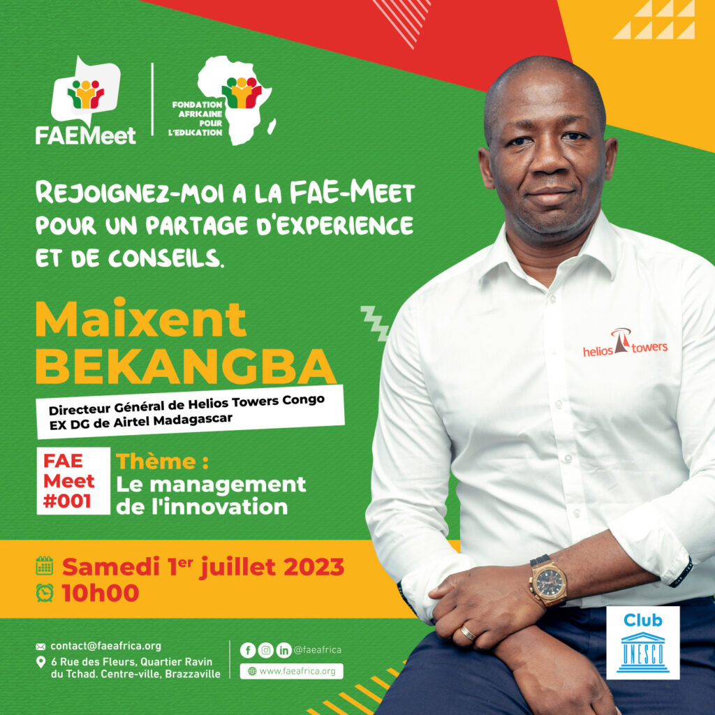 Dans le monde d’aujourd’hui, qui évolue rapidement, l’innovation est devenue la pierre angulaire du progrès et de la réussite dans tous les secteurs d’activité. La Fondation Africaine pour l’Education (FAE) est fière de présenter sa toute première rencontre, avec l’estimé M. Maixent BEKANGBA.